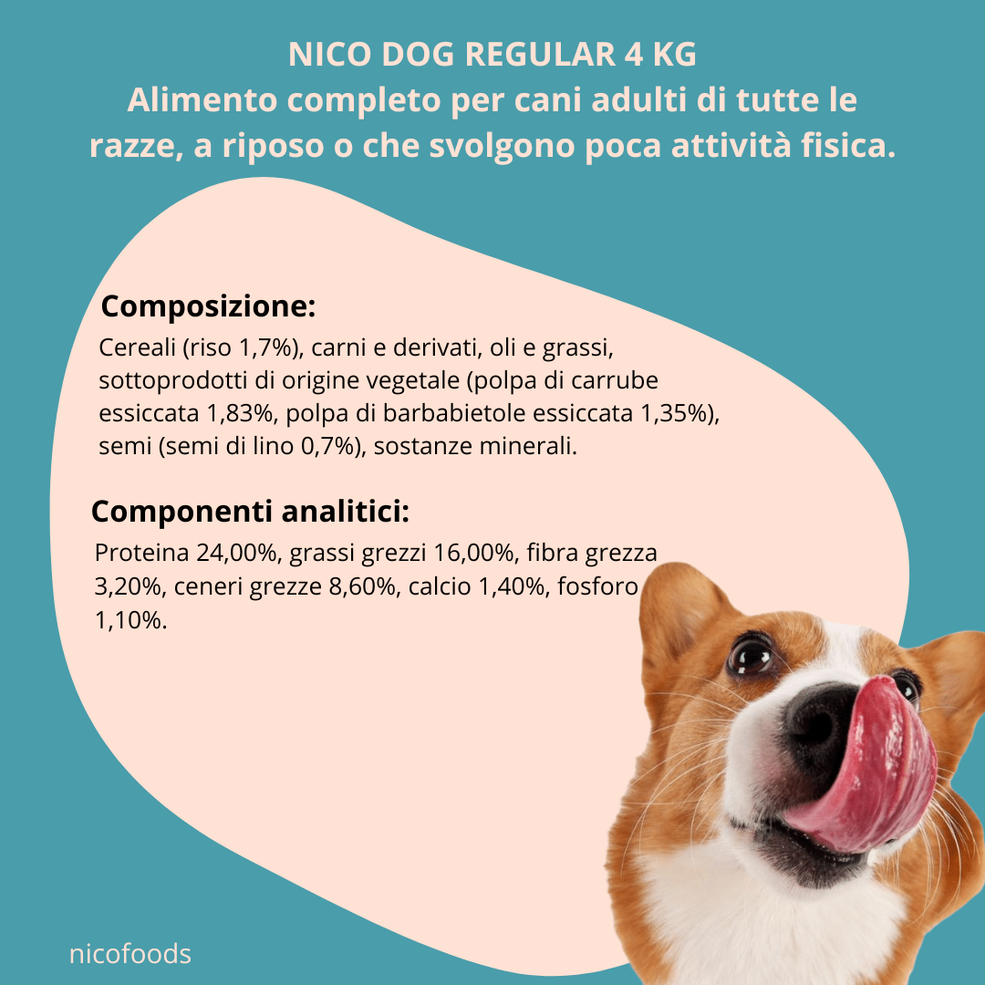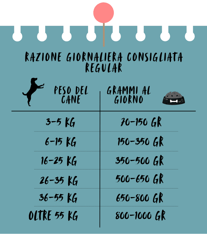 Regular è indicato per tutti i cani adulti a riposo o che svolgono poca attività fisica.